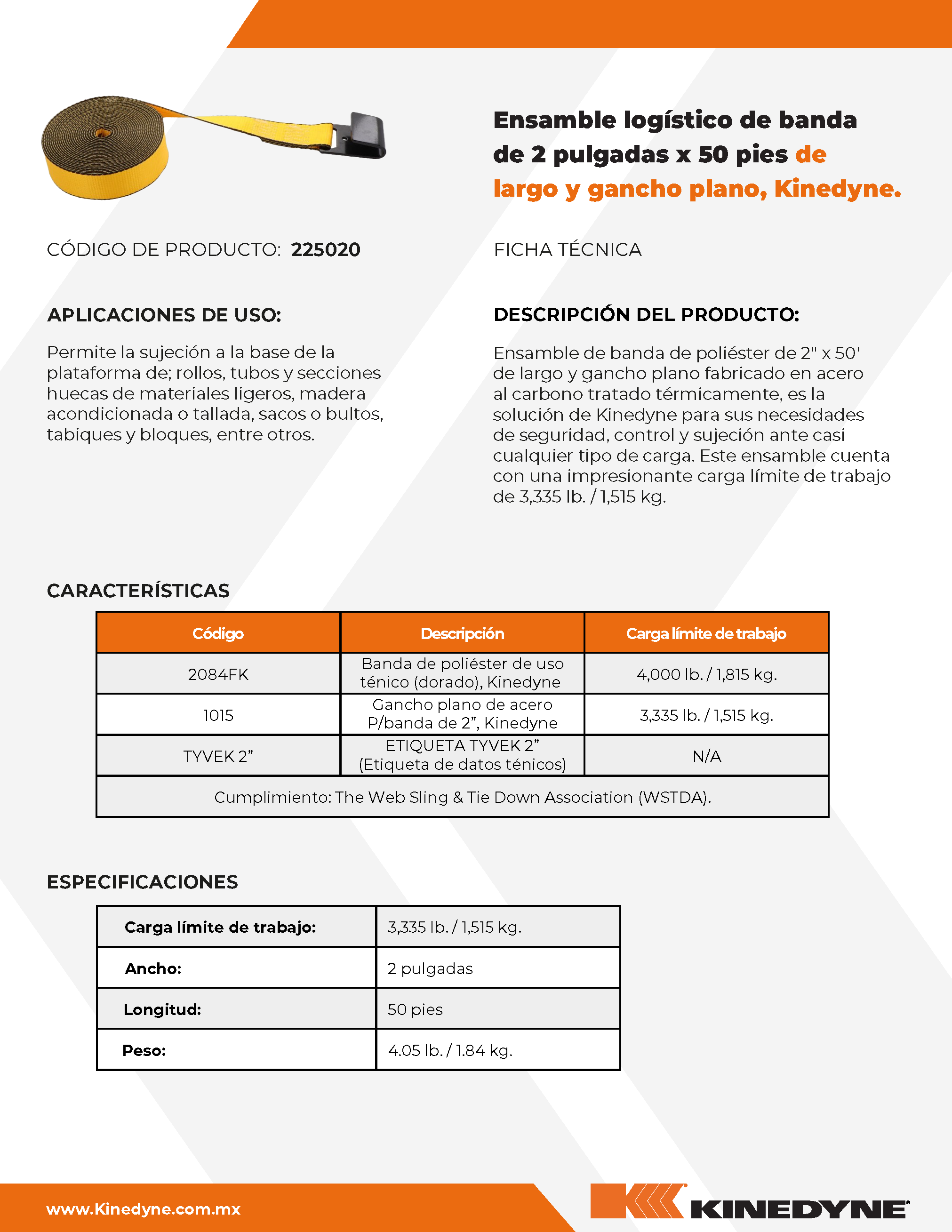 225020 ENSAMBLE LOGISTICO DE BANDA DE 2 PULGADAS X 50 PIES
